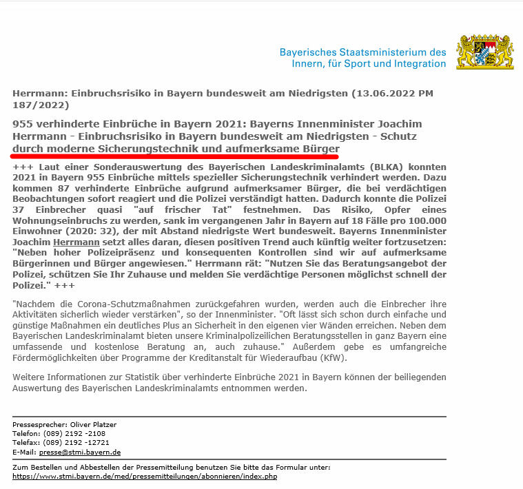 Einbruchsentwicklung in Bayern 2021 - Safer Cities