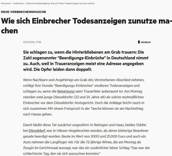 Einbruchsopfer nach Traueranzeigen ausgewählt - Safer Cities