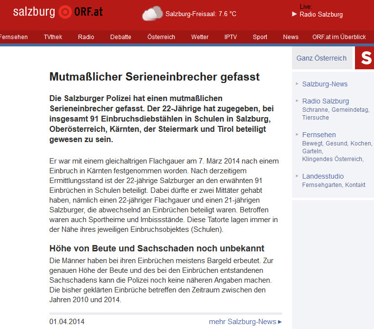 In darauf folgenden Ermittlungen und Vernehmungen bis zum 2.4.2014 konnten insgesamt 91 Einbrüche - überwiegend in Schulen - nachgewiesen werden.
