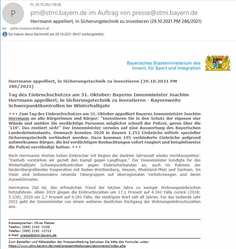 Das Bayerische Innenministerium empfiehlt Privat-Investitionen in mehr Sicherheit
