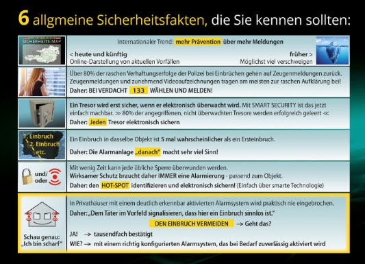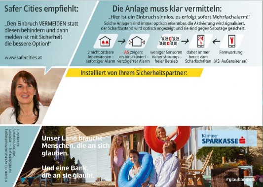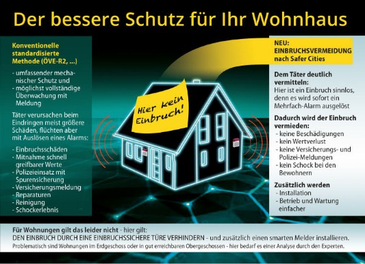Dieser Folder zeigt Eigenheimbesitzern, dass eine nach safer cities modifizierte klassische Alarmanlage einen deutlich besseren Schutz bietet als es mit Smarten Meldern möglich wärde.