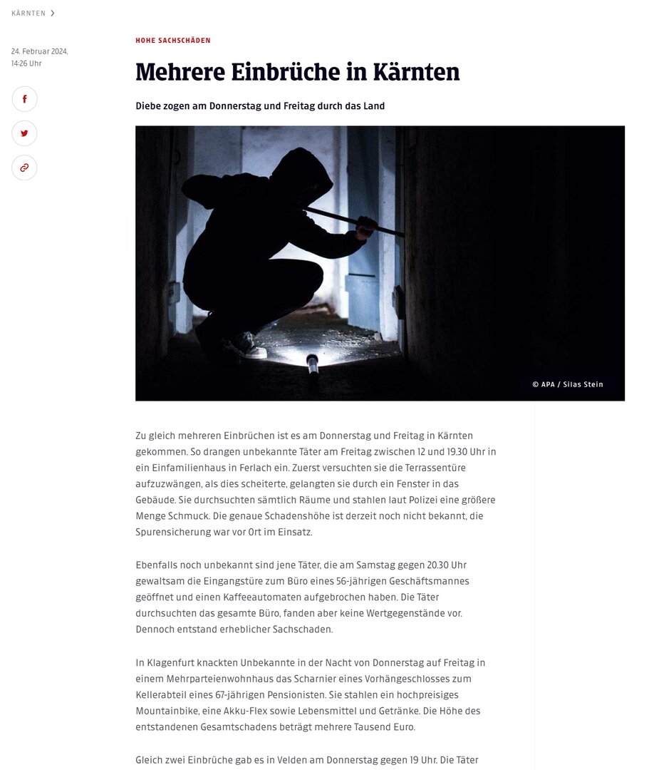 Auswertungen der Presseberichte zeigen (hier Bsp Jänner 2024)