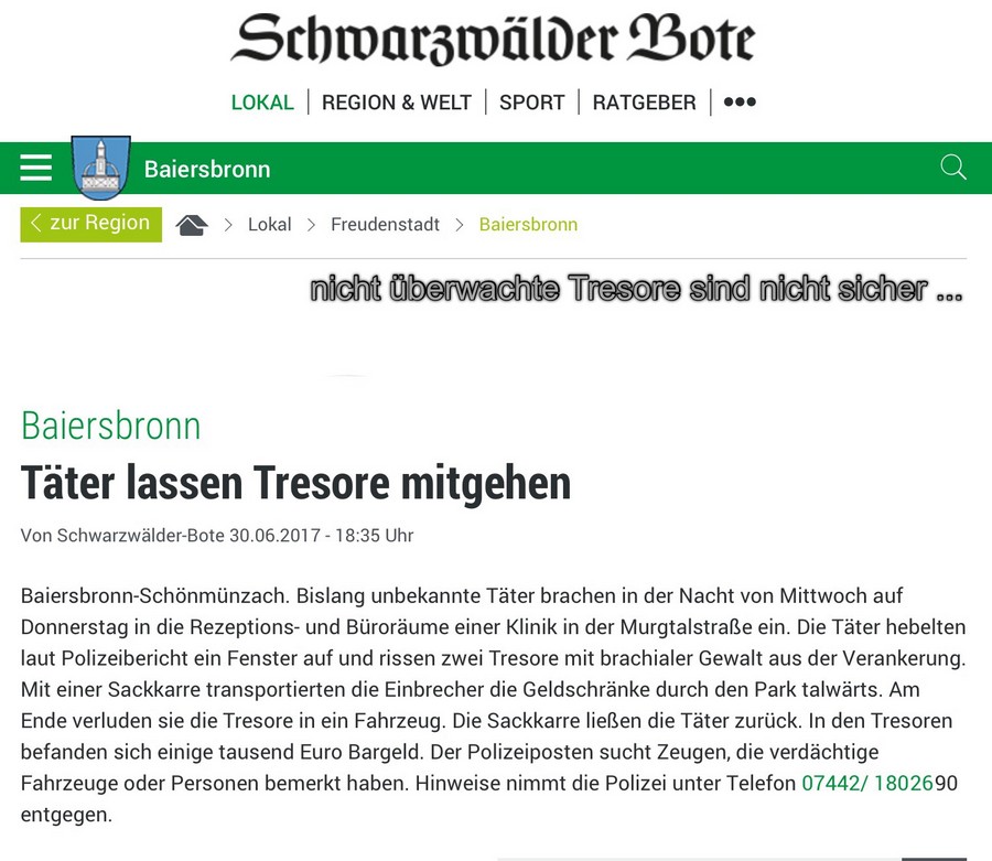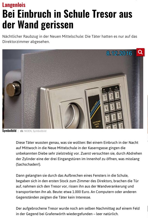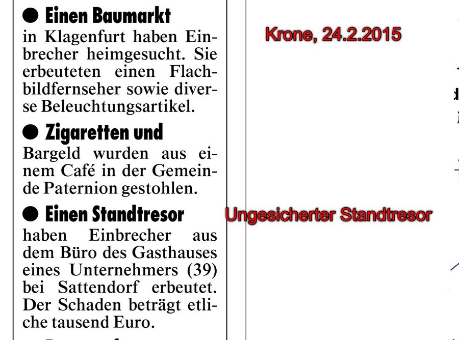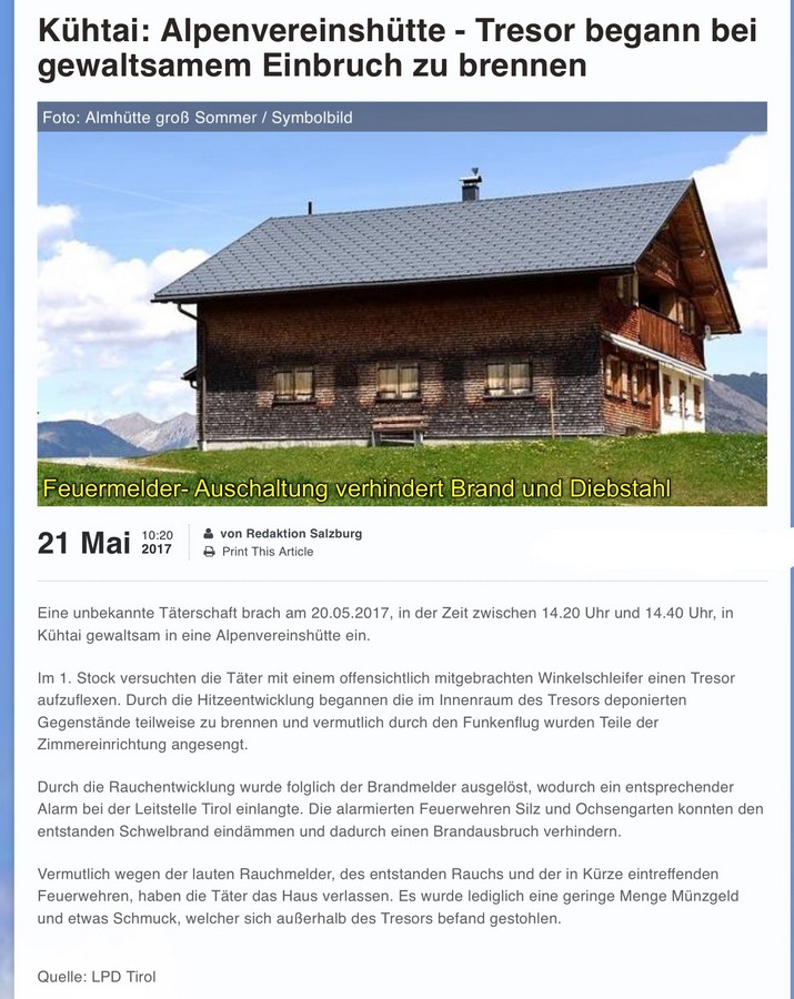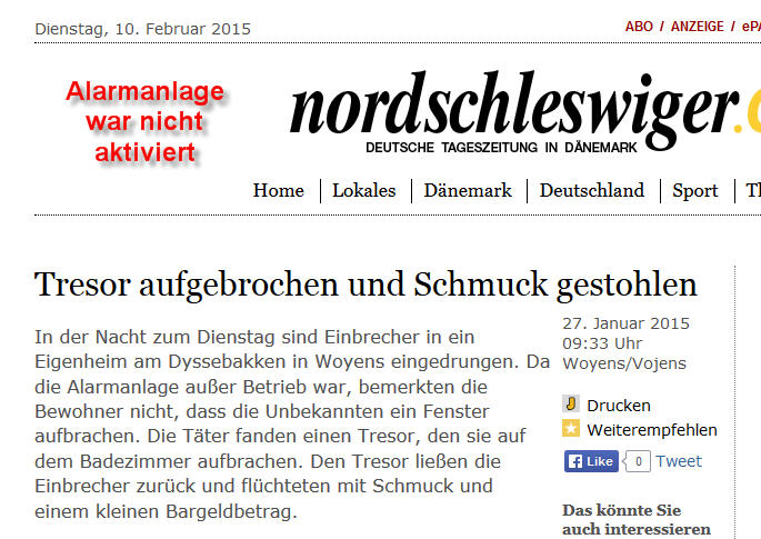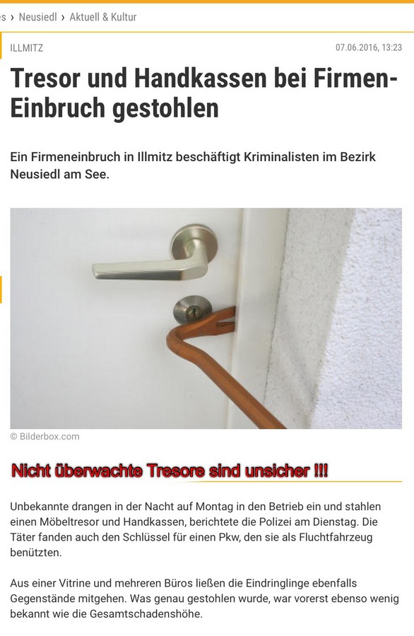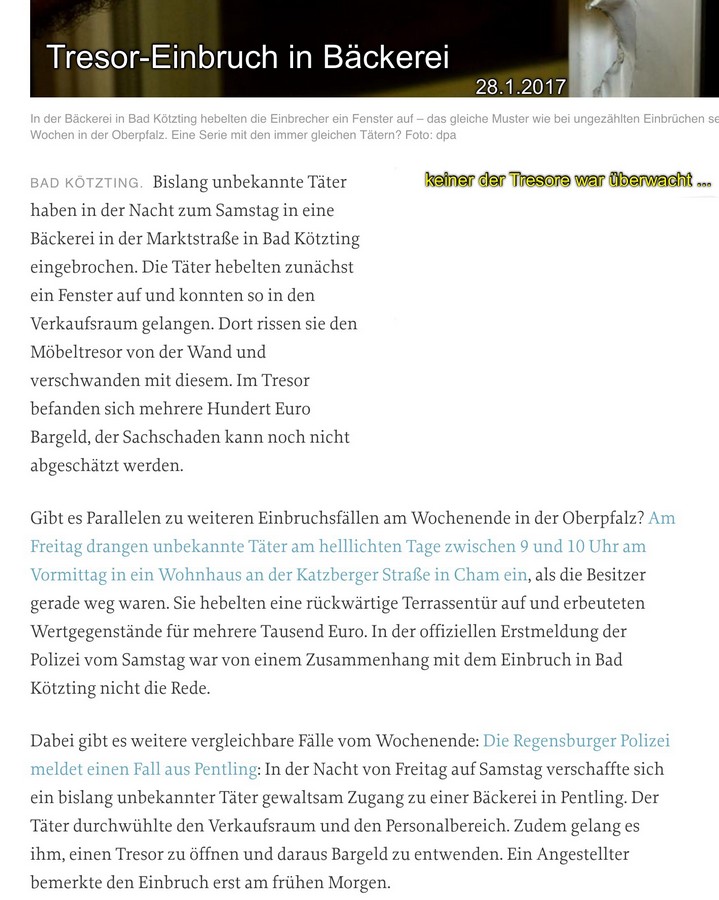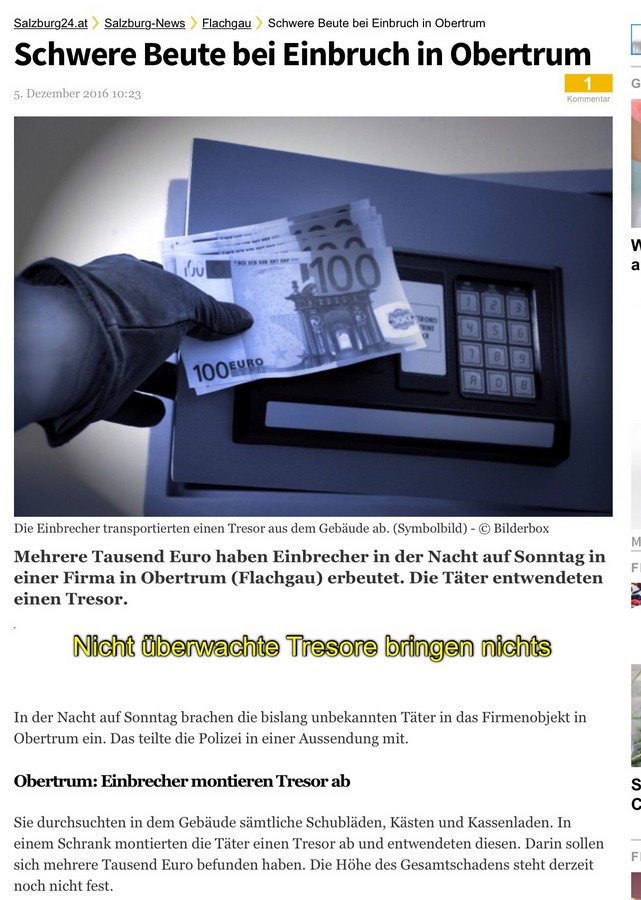 Die Liste von Alarm-entdeckten Tresoraufbrüche ist leider sehr kurz.