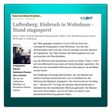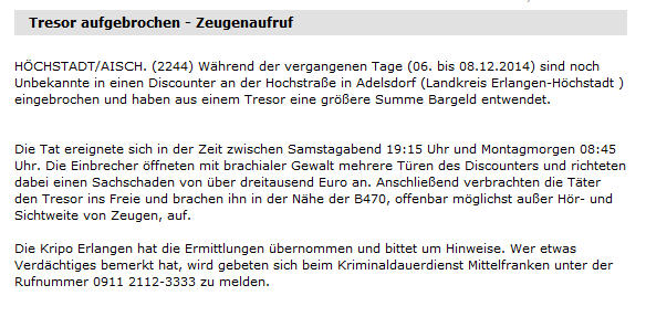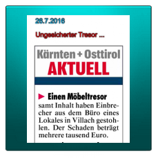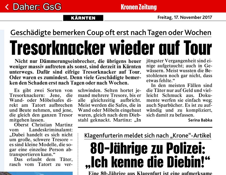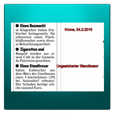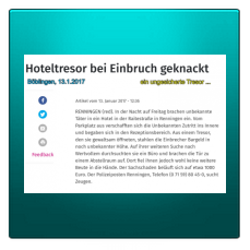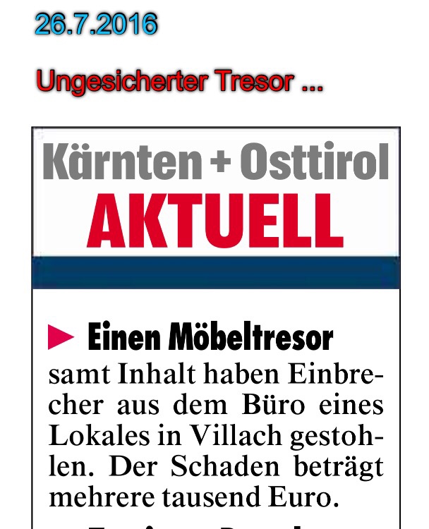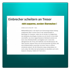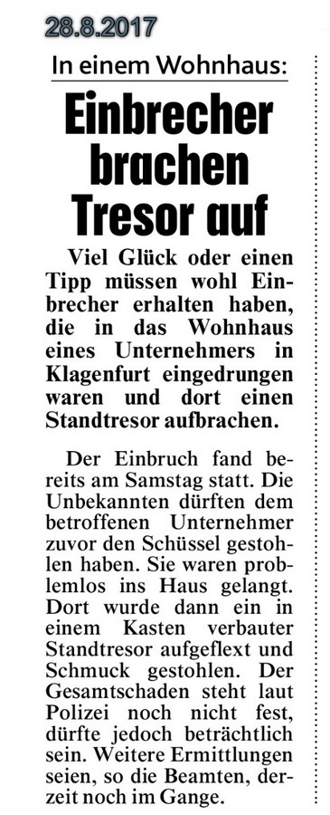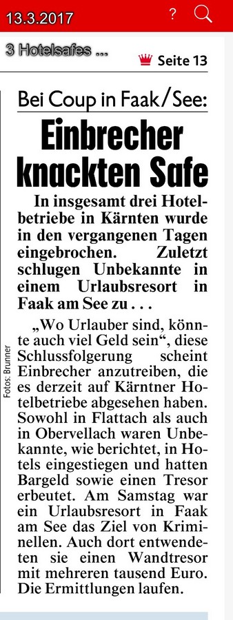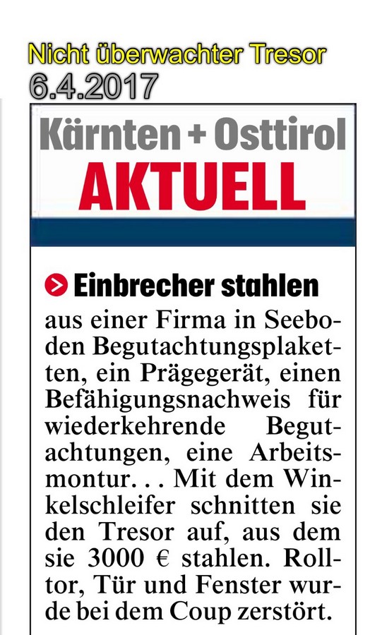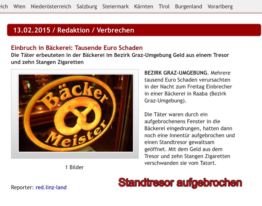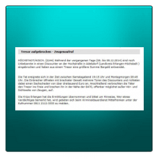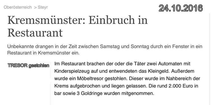 Die Liste von Alarm-entdeckten Tresoraufbrüche ist leider sehr kurz.