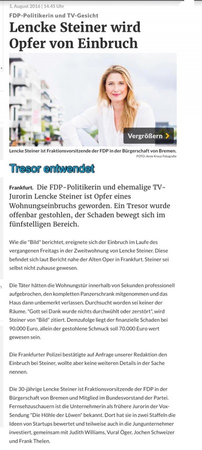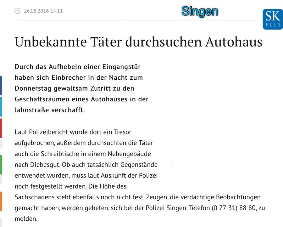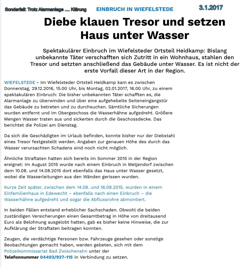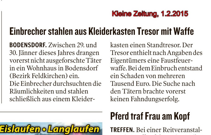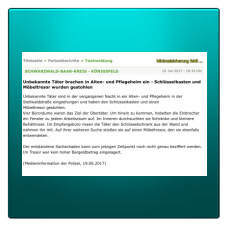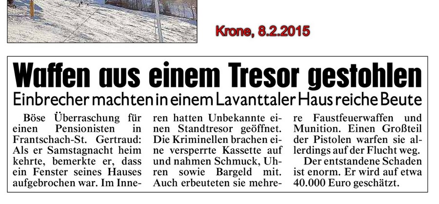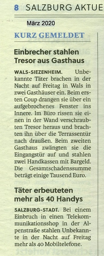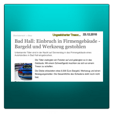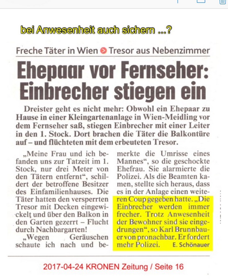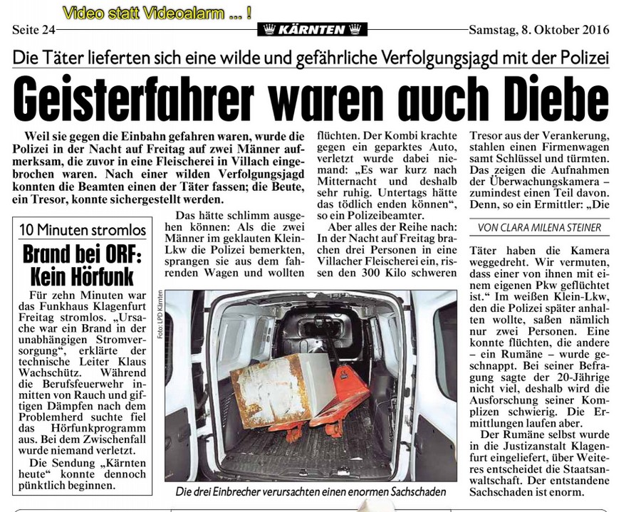 Die Liste von Alarm-entdeckten Tresoraufbrüche ist leider sehr kurz.