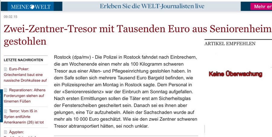 Nicht überwachte Tresore werden fast immer zur leichten Beute