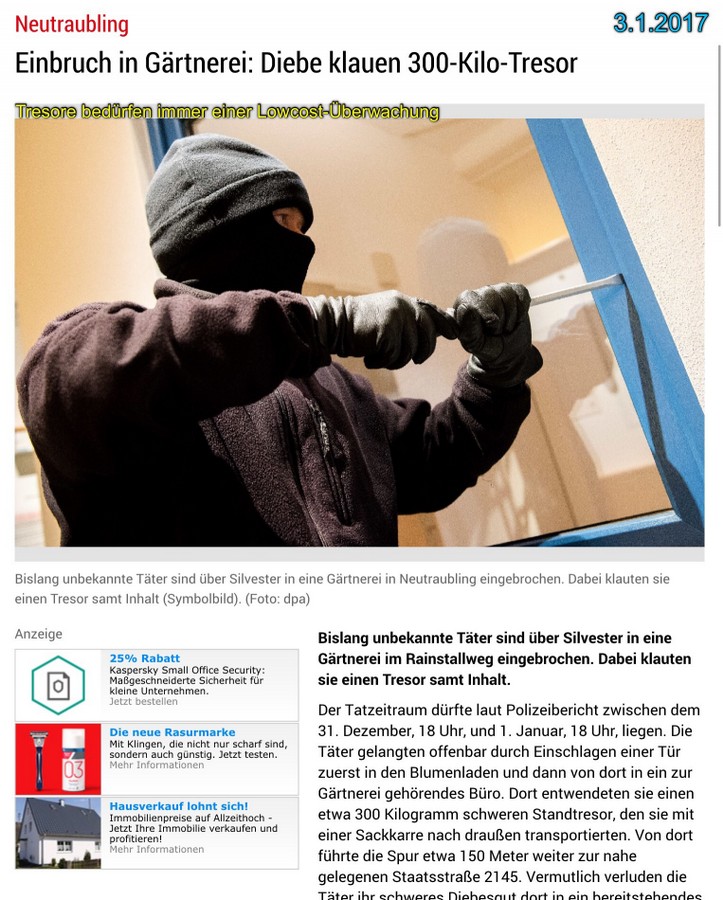 Dabei kostet ein Tresorschutz wenig - gute Lösungen gibt es ab 500€.