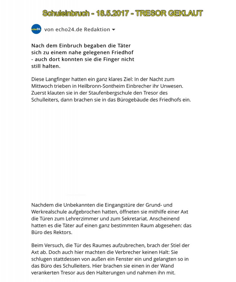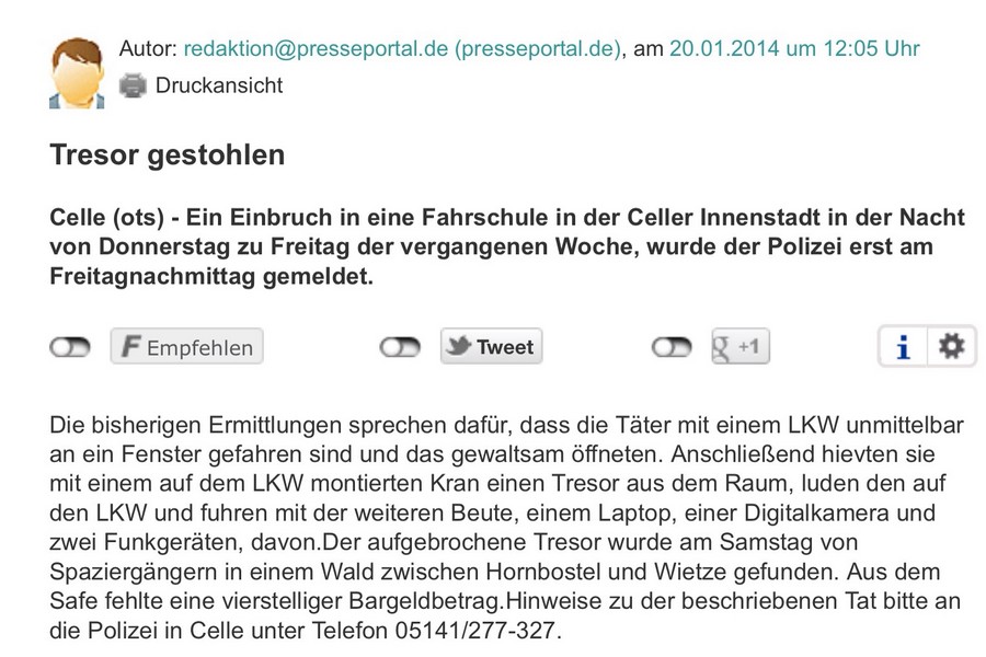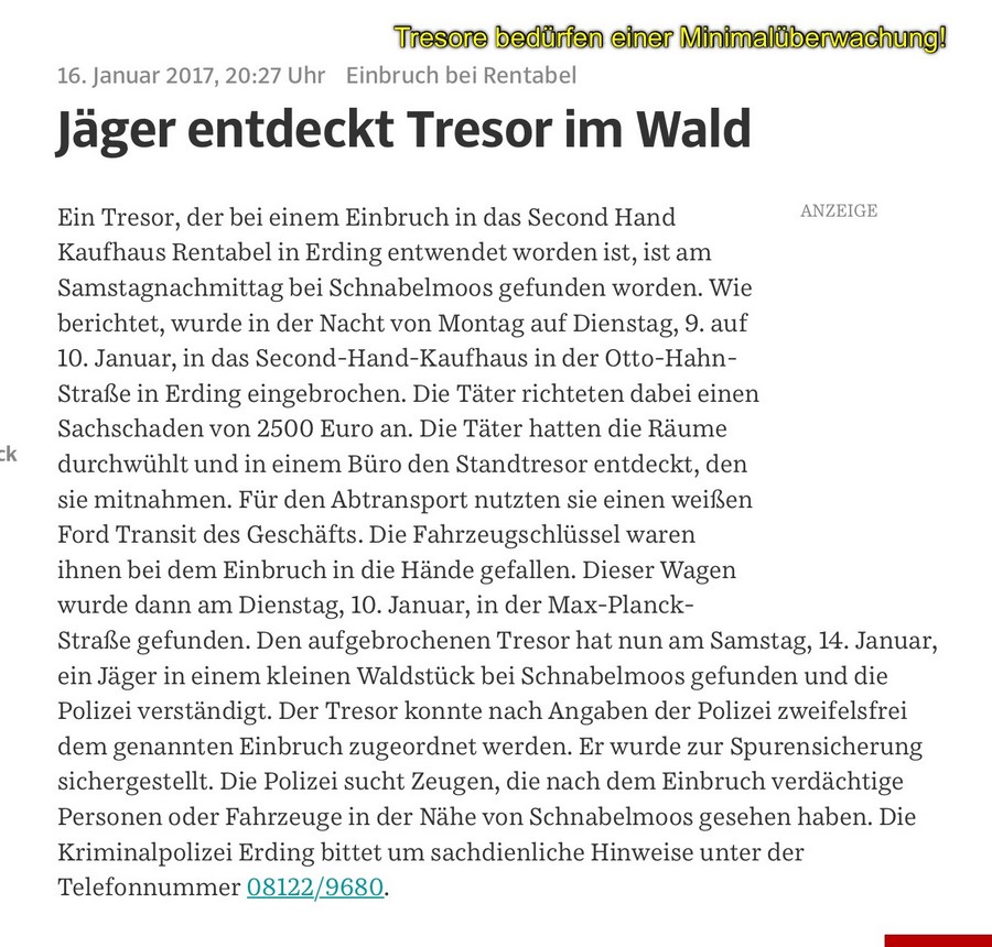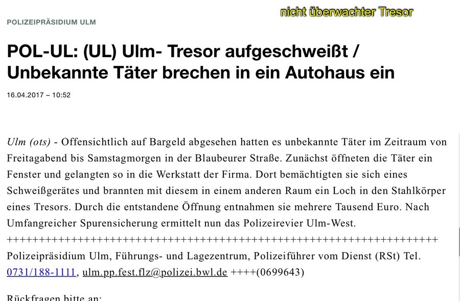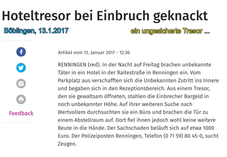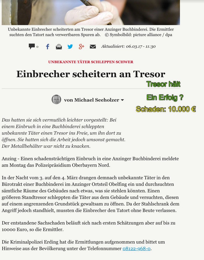 Die Beispiele zu erfolgreich erbeuteten Tresoren ist endlos lang ...