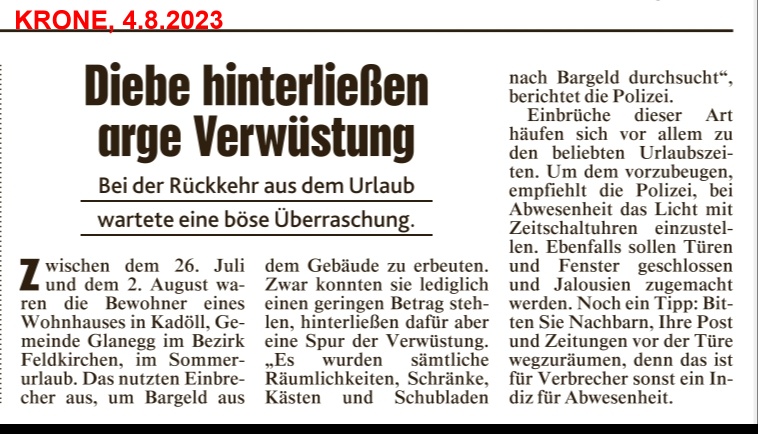 Typisches Beispiel eines Urlaubszeit-Einbruchs - Safer Cities