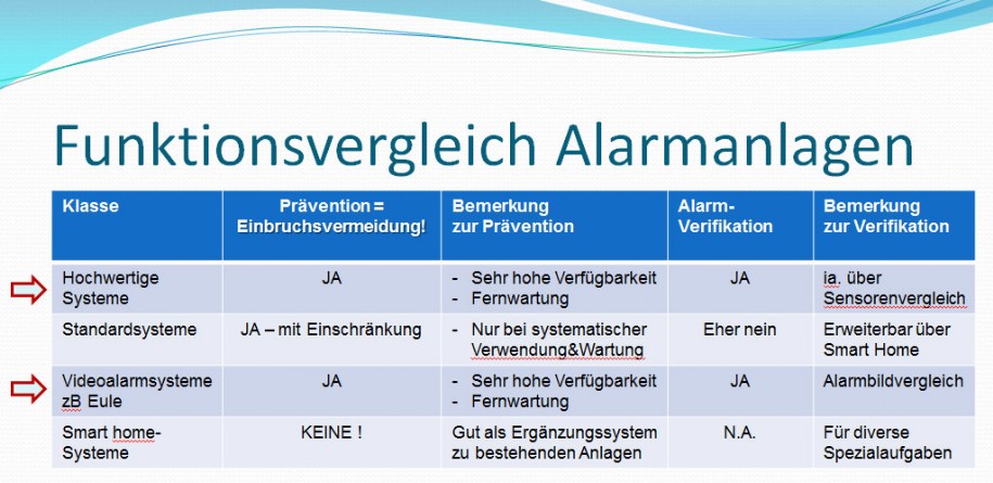 Übersicht Alarmanlagen Funktionsvergleich